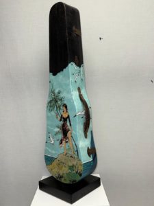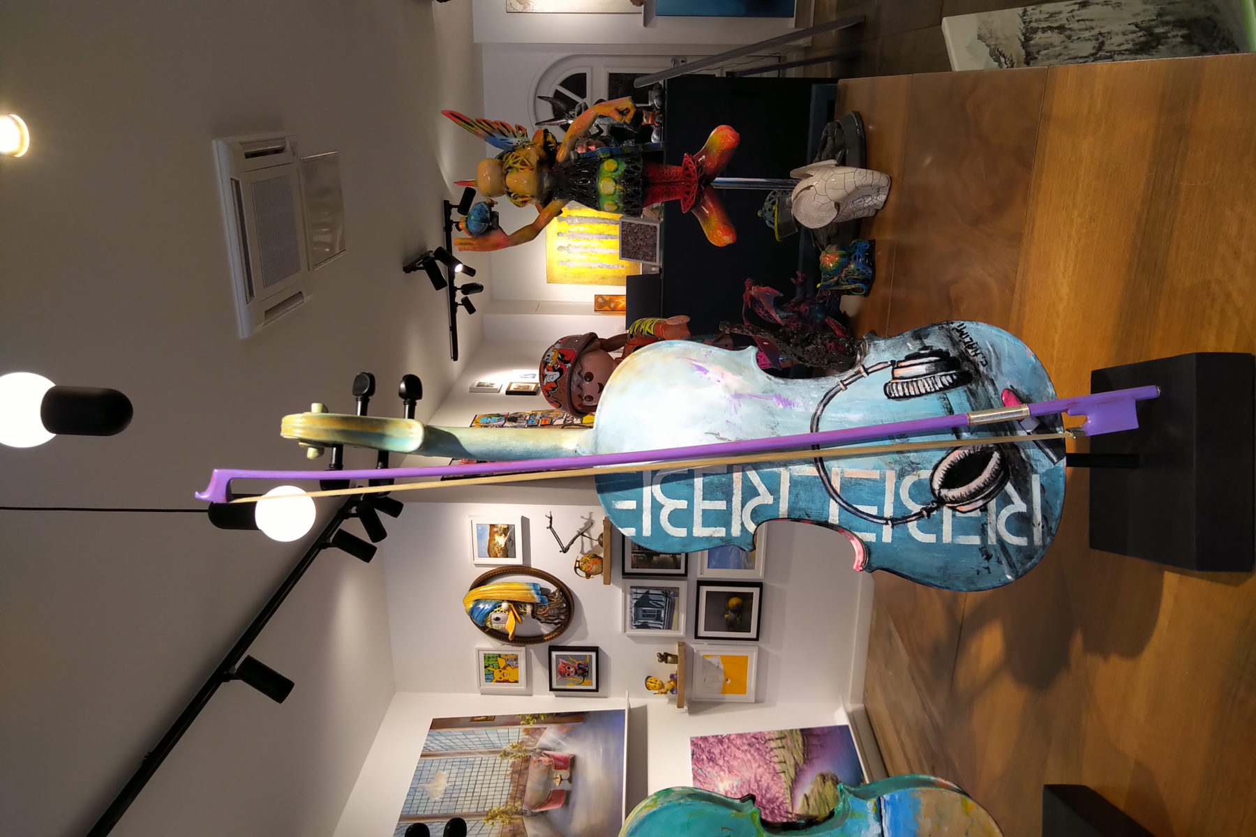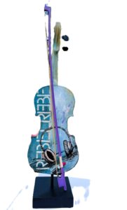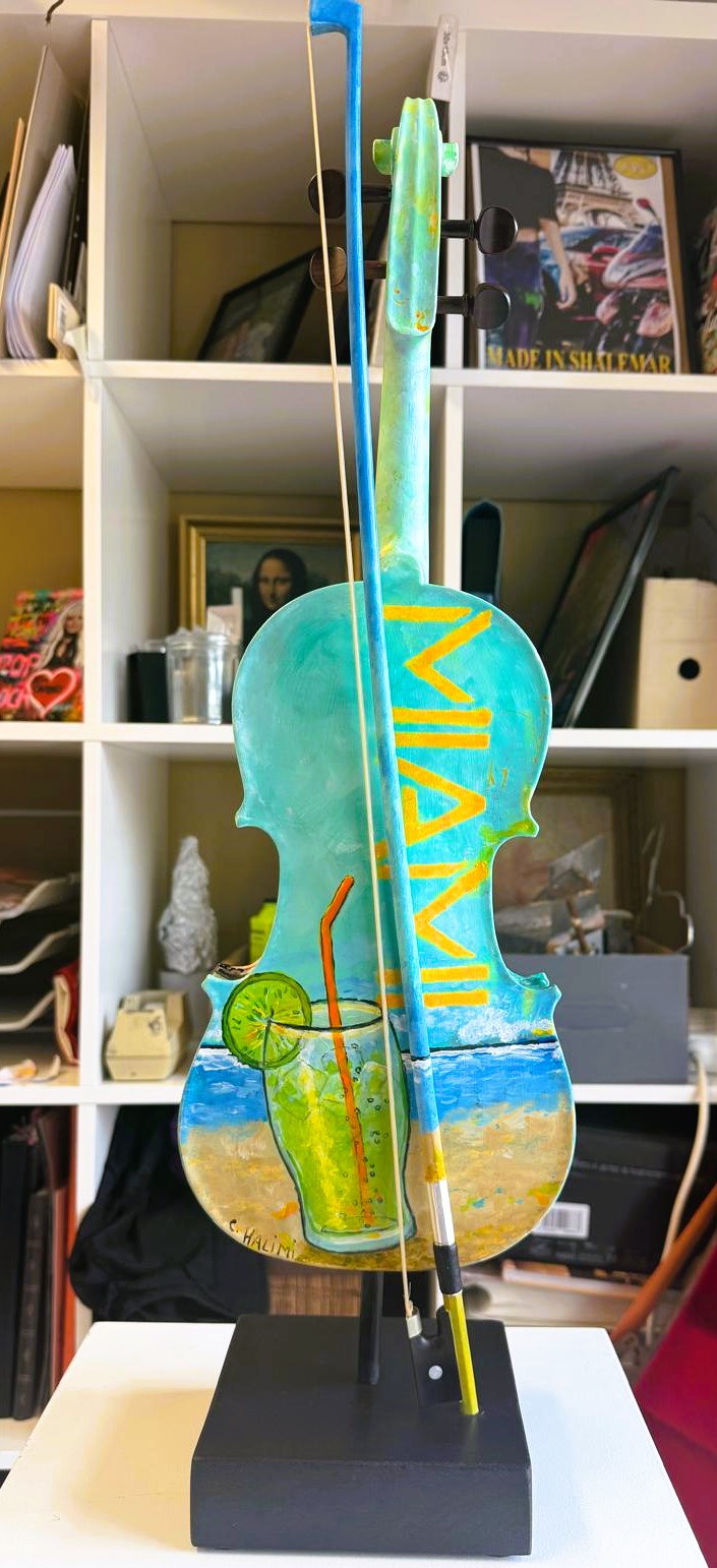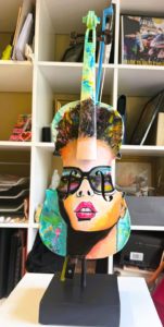Guitare Departure to Caribbean Dim H101/L35/10,5 cm. Socle bois. By C. Halimi Di Domessini Guitare " Route 66 " Dim H110/L41/11,5 cm - by C. Halimi di DomessiniGuitare " Route 66 " by C. Halimi di DomessiniDétail haut manche Guitare " Route 66 " by C. Halimi di Domessini