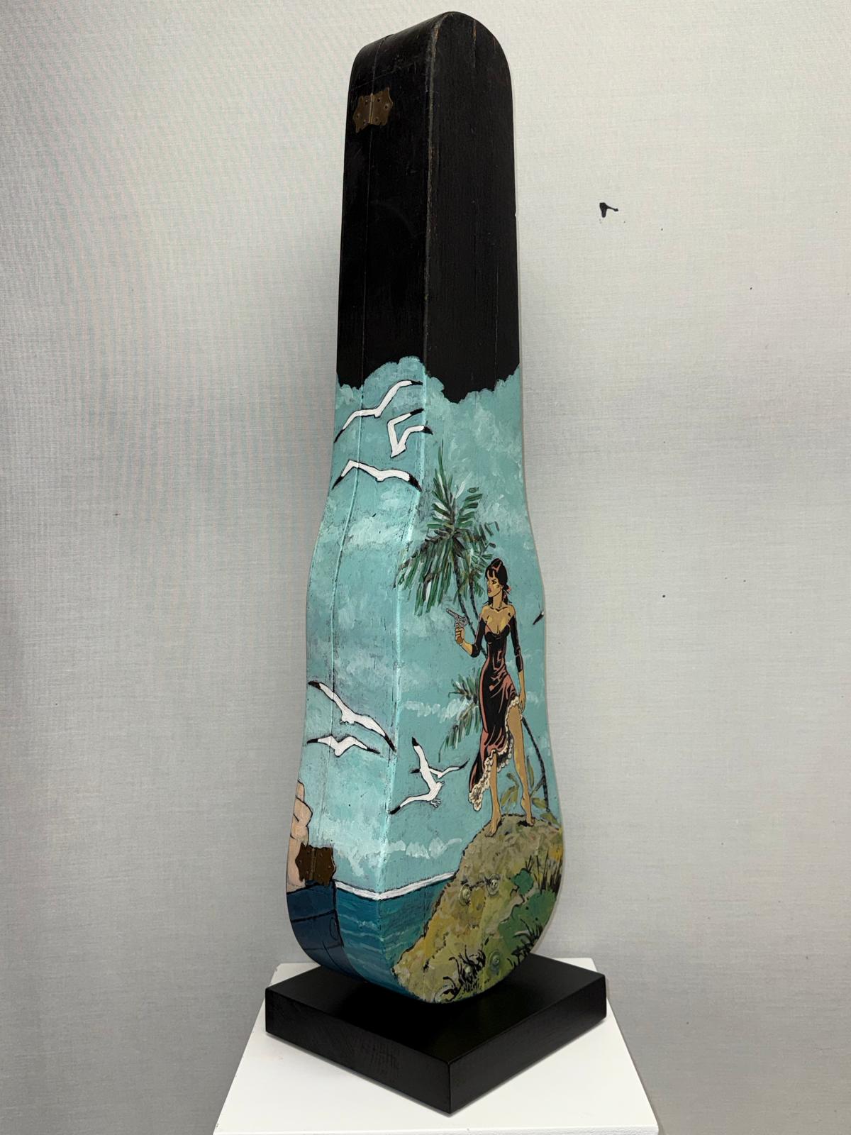 Corto Maltese sur étui à violon. Acrylique dim H78/22/9 cm. DevantCorto Maltese sur étui à violon. Acrylique dim H78/22/9 cm.Corto Maltese sur étui à violon. Acrylique dim H78/22/9 cm.Corto Maltese sur étui à violon. Acrylique dim H78/22/9 cm. Dos.